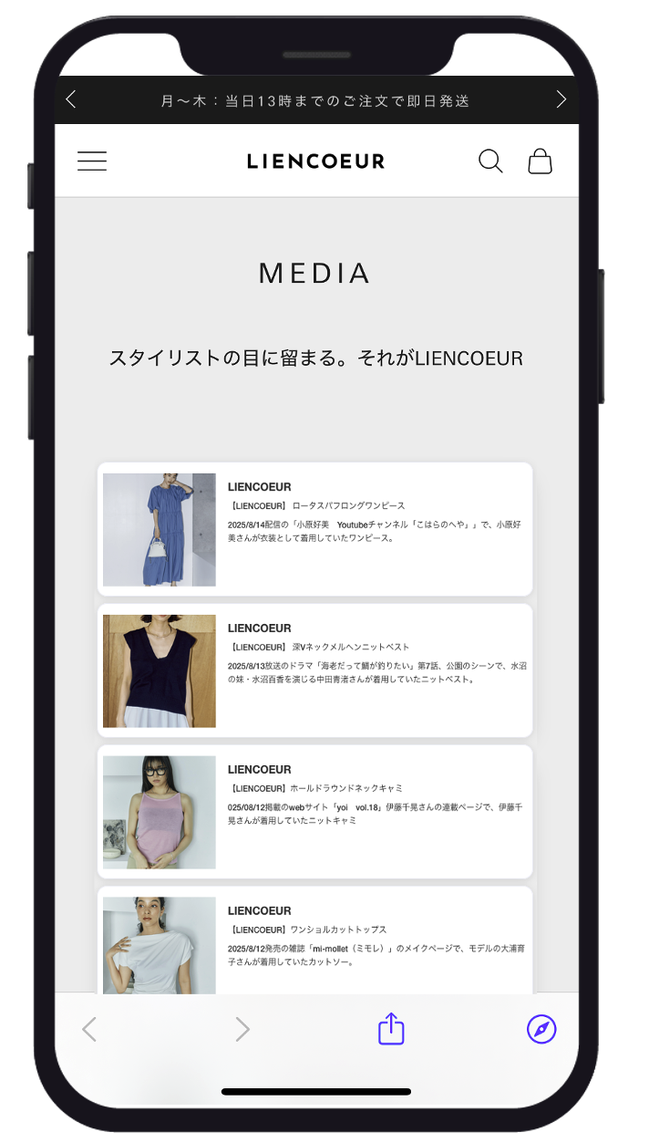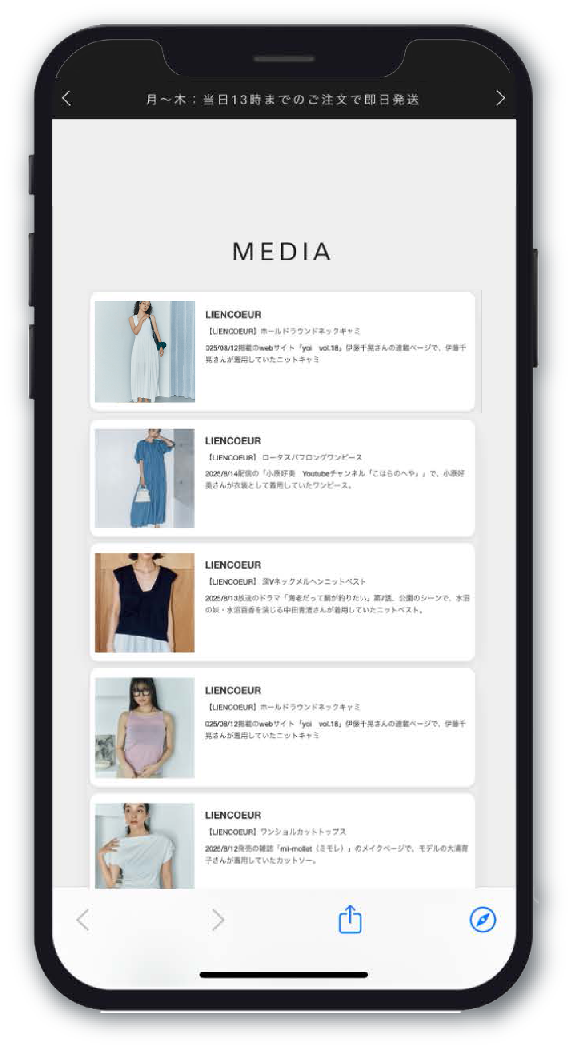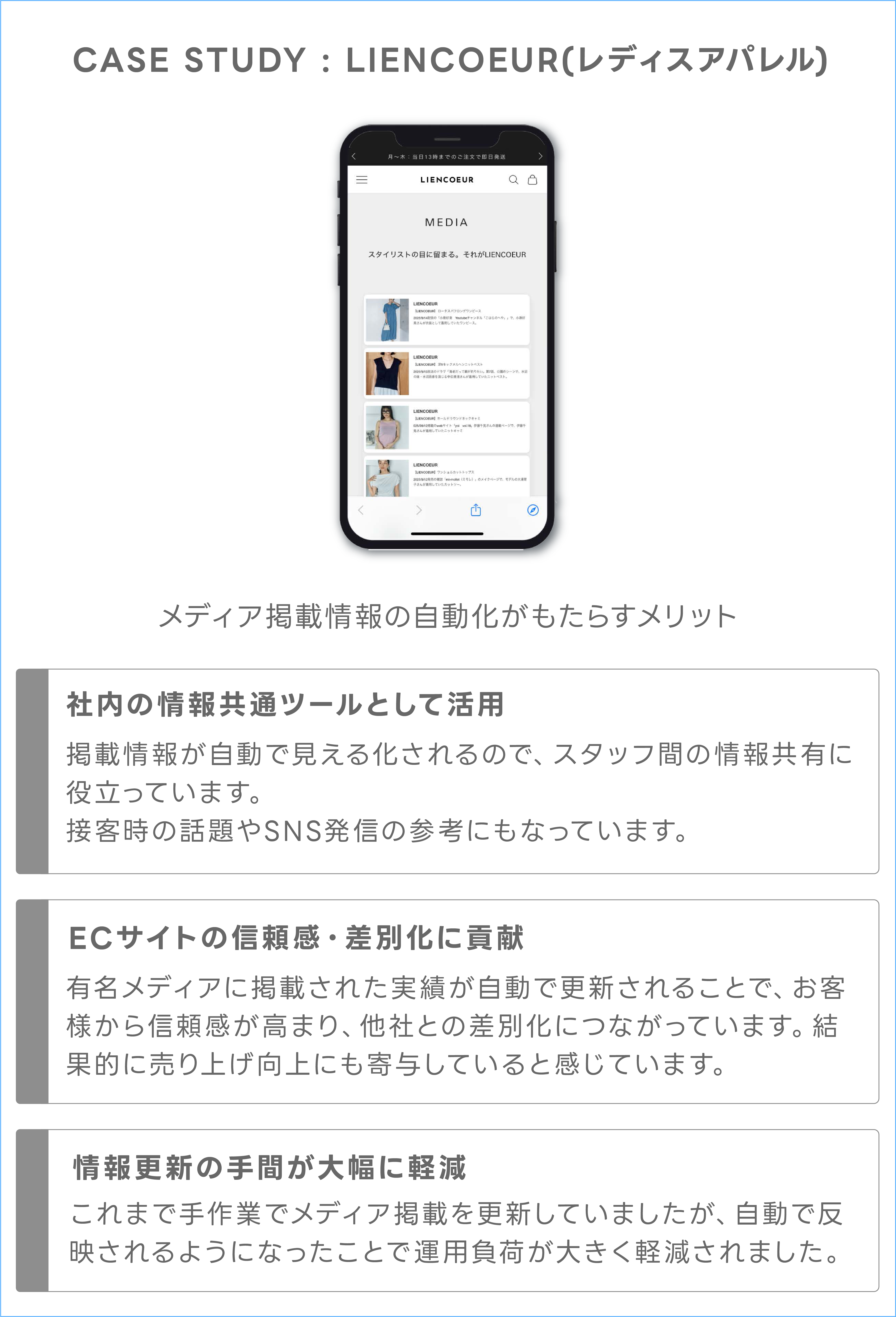 メディア掲載実績が自社ECサイトに自動で反映されます。