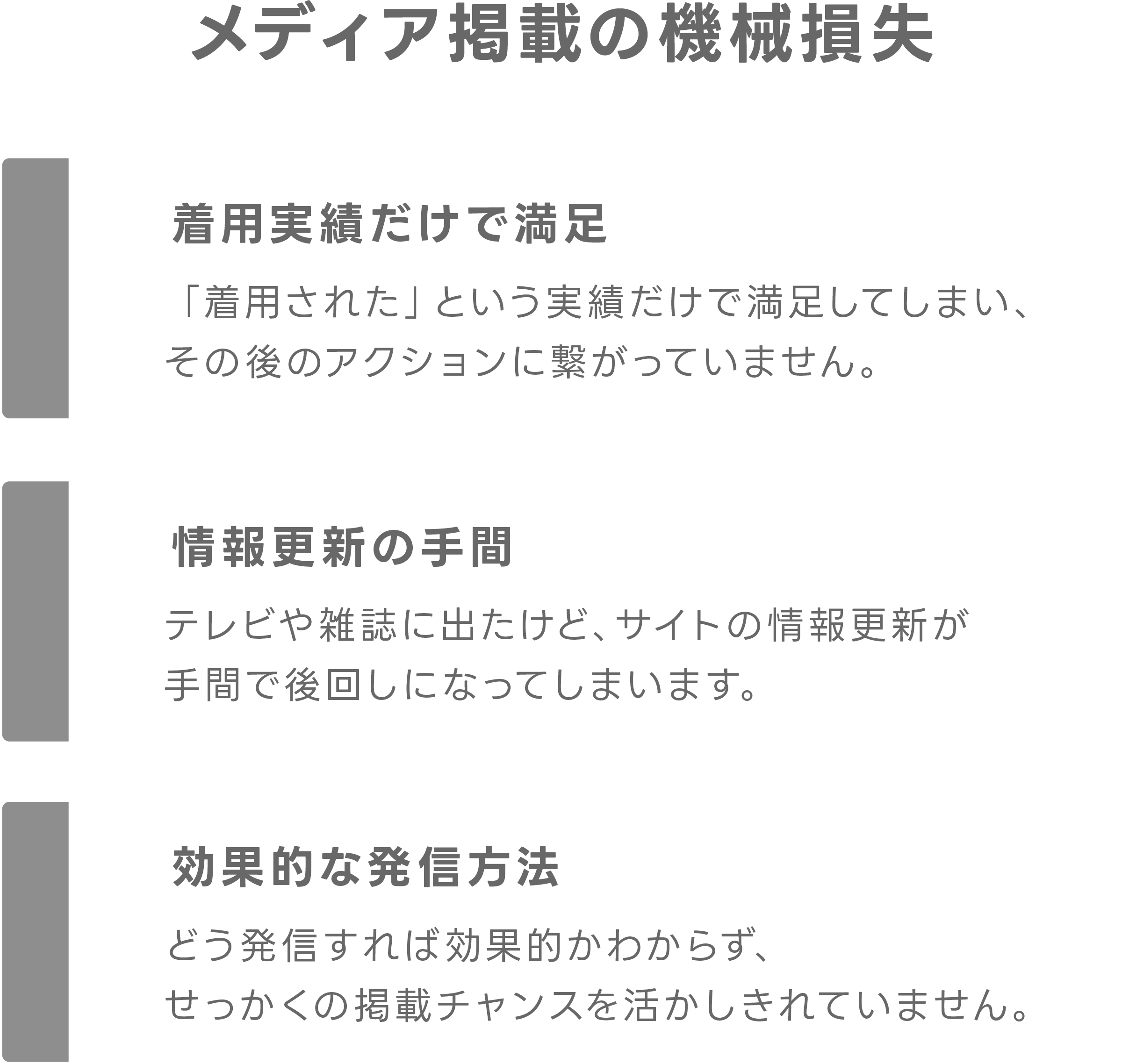 メディア掲載情報を素早くECに反映し、購買意欲を刺激することで、劇的な売上向上を実現しています。